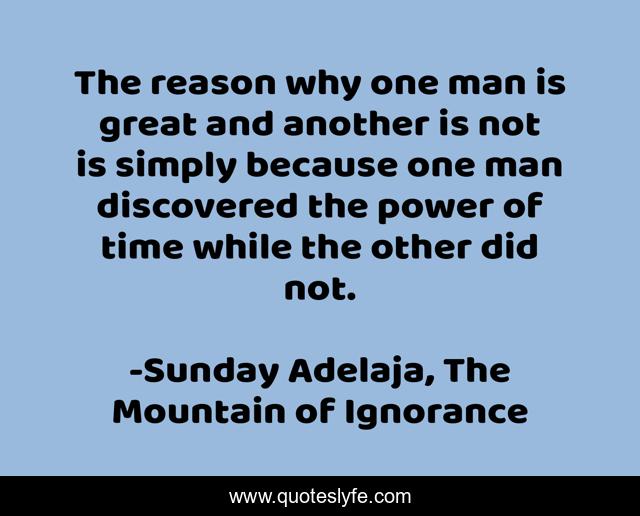 "Sunday Adelaja, The Mountain of Ignorance Quotes." Quoteslyfe.com, 2025. Fri. 05 Dec. 2025. <https://www.quoteslyfe.com/quote/The-reason-why-one-man-is-great-39433>.