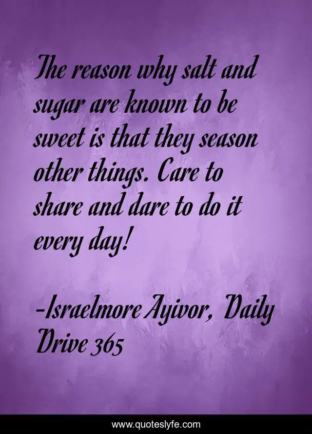 "Israelmore Ayivor, Daily Drive 365 Quotes." Quoteslyfe.com, 2025. Fri. 05 Dec. 2025. <https://www.quoteslyfe.com/quote/The-reason-why-salt-and-sugar-are-129445>.