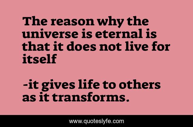 "it gives life to others as it transforms. Quotes." Quoteslyfe.com, 2025. Sat. 06 Dec. 2025. <https://www.quoteslyfe.com/quote/The-reason-why-the-universe-is-eternal-3006>.