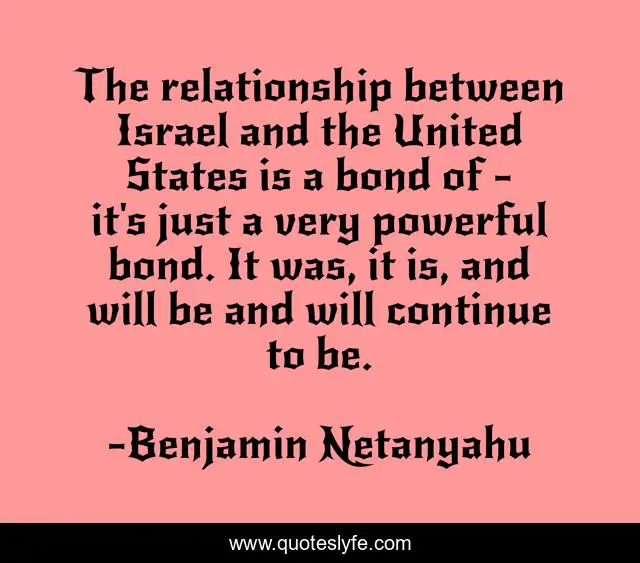 This page presents the quote "The relationship between Israel and the United States is a bond of - it's just a very powerful bond. It was, it is, and will be and will continue to be.". Author of this quote is Benjamin Netanyahu. This quote is about powerful, bond,.