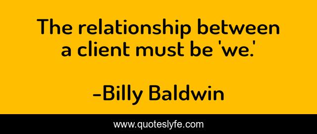 This page presents the quote "The relationship between a client must be 'we.'". Author of this quote is Billy Baldwin. This quote is about client, between,.