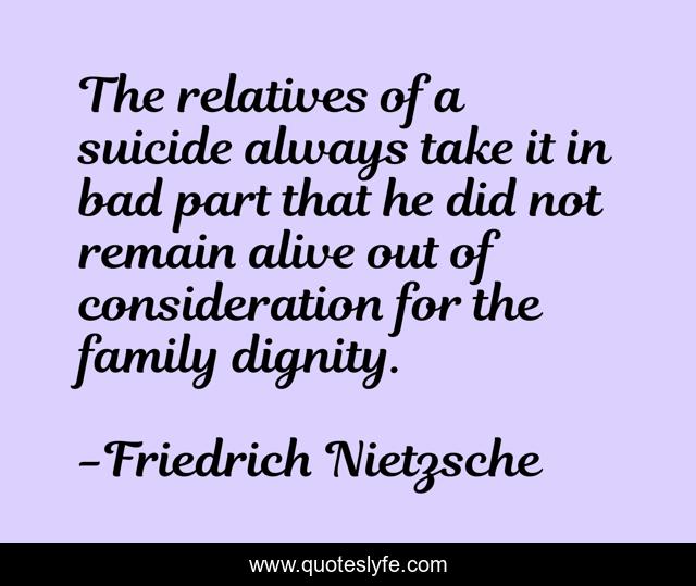 This page presents the quote "The relatives of a suicide always take it in bad part that he did not remain alive out of consideration for the family dignity.". Author of this quote is Friedrich Nietzsche. .