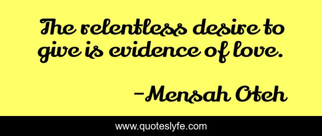 "Mensah Oteh Quotes." Quoteslyfe.com, 2025. Sat. 06 Dec. 2025. <https://www.quoteslyfe.com/quote/The-relentless-desire-to-give-is-evidence-49298>.