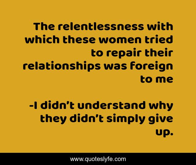 "I didn’t understand why they didn’t simply give up. Quotes." Quoteslyfe.com, 2025. Sat. 06 Dec. 2025. <https://www.quoteslyfe.com/quote/The-relentlessness-with-which-these-women-tried-59206>.