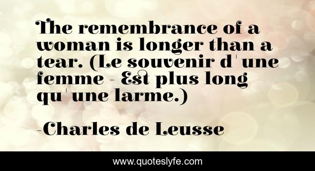 This page presents the quote "The remembrance of a woman is longer than a tear. (Le souvenir d'une femme - Est plus long qu'une larme.)". Author of this quote is Charles de Leusse. This quote is about woman, tear, larme, souvenir, remembrance, femme,.