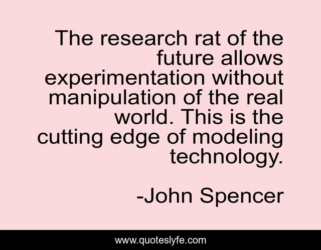 This page presents the quote "The research rat of the future allows experimentation without manipulation of the real world. This is the cutting edge of modeling technology.". Author of this quote is John Spencer. This quote is about world, future, research,.