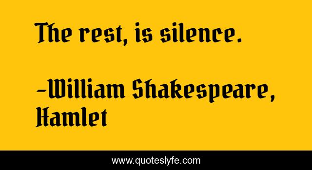 This page presents the quote "The rest, is silence.". Author of this quote is William Shakespeare, Hamlet. .