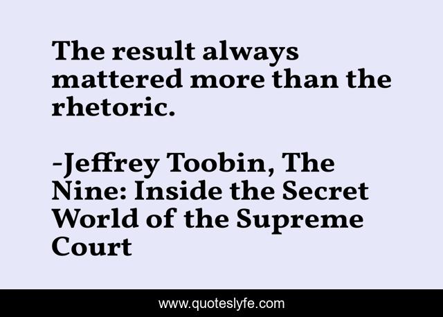 "Jeffrey Toobin, The Nine: Inside the Secret World of the Supreme Court Quotes." Quoteslyfe.com, 2025. Fri. 05 Dec. 2025. <https://www.quoteslyfe.com/quote/The-result-always-mattered-more-than-the-244473>.