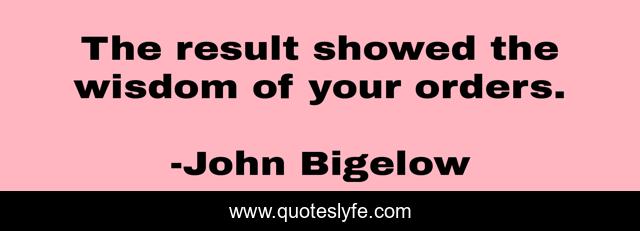 This page presents the quote "The result showed the wisdom of your orders.". Author of this quote is John Bigelow. This quote is about your, orders, result,.