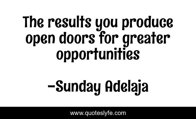 This page presents the quote "The results you produce open doors for greater opportunities". Author of this quote is Sunday Adelaja. This quote is about life, blessing, jobless, greater-opportunities, money, work, results, opportunities, job,.