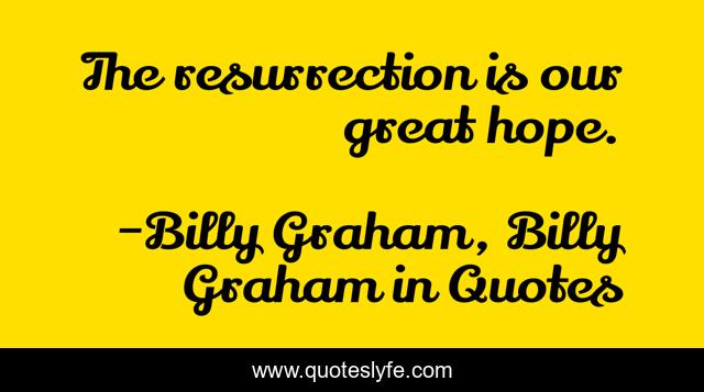 "Billy Graham, Billy Graham in Quotes Quotes." Quoteslyfe.com, 2025. Sat. 06 Dec. 2025. <https://www.quoteslyfe.com/quote/The-resurrection-is-our-great-hope-152300>.