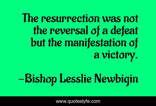 This page presents the quote "The resurrection was not the reversal of a defeat but the manifestation of a victory.". Author of this quote is Bishop Lesslie Newbigin. .