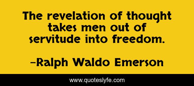 This page presents the quote "The revelation of thought takes men out of servitude into freedom.". Author of this quote is Ralph Waldo Emerson. This quote is about thought, freedom, philosophy,.