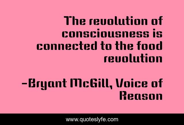 This page presents the quote "The revolution of consciousness is connected to the food revolution". Author of this quote is Bryant McGill, Voice of Reason. This quote is about generous, perception, fight,.