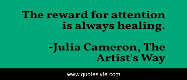 "Julia Cameron, The Artist's Way Quotes." Quoteslyfe.com, 2025. Fri. 05 Dec. 2025. <https://www.quoteslyfe.com/quote/The-reward-for-attention-is-always-healing-148302>.