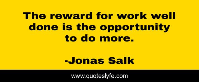 This page presents the quote "The reward for work well done is the opportunity to do more.". Author of this quote is Jonas Salk. This quote is about well done, opportunity,.
