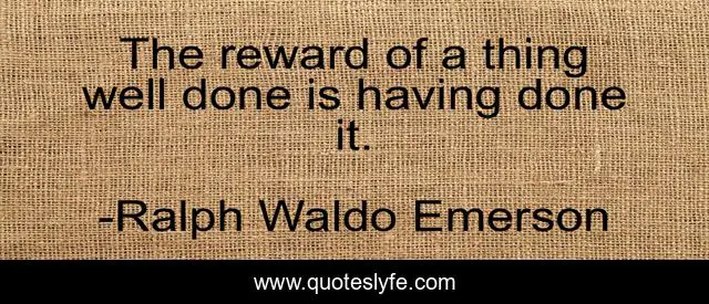 This page presents the quote "The reward of a thing well done is having done it.". Author of this quote is Ralph Waldo Emerson. This quote is about enthusiasm, inspirational,.