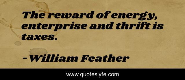 This page presents the quote "The reward of energy, enterprise and thrift is taxes.". Author of this quote is William Feather. This quote is about energy, reward, taxes,.