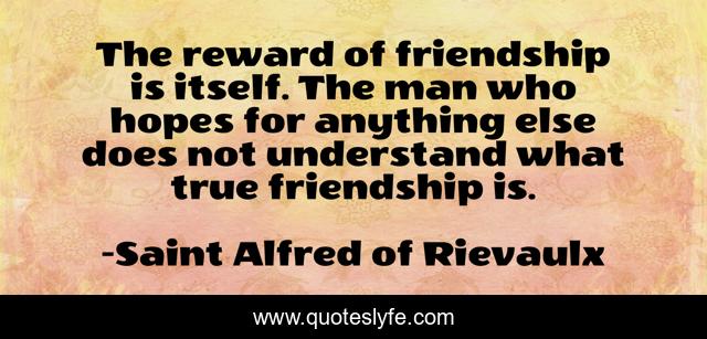 This page presents the quote "The reward of friendship is itself. The man who hopes for anything else does not understand what true friendship is.". Author of this quote is Saint Alfred of Rievaulx. .