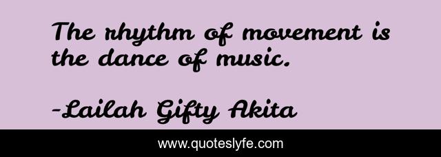 This page presents the quote "The rhythm of movement is the dance of music.". Author of this quote is Lailah Gifty Akita. This quote is about dance, music, rhythm, movement,.