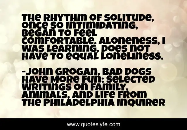 "John Grogan, Bad Dogs Have More Fun: Selected Writings on Family, Animals, and Life from The Philadelphia Inquirer Quotes." Quoteslyfe.com, 2025. Sat. 06 Dec. 2025. <https://www.quoteslyfe.com/quote/The-rhythm-of-solitude-once-so-intimidating-117237>.