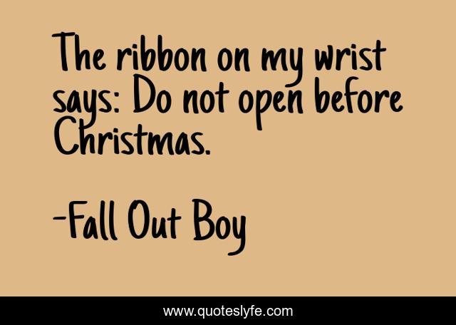 This page presents the quote "The ribbon on my wrist says: Do not open before Christmas.". Author of this quote is Fall Out Boy. This quote is about music, fall-out-boy,.