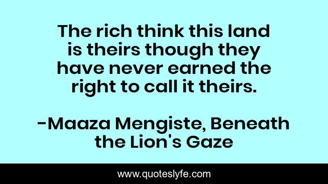 "Maaza Mengiste, Beneath the Lion's Gaze Quotes." Quoteslyfe.com, 2025. Mon. 08 Dec. 2025. <https://www.quoteslyfe.com/quote/The-rich-think-this-land-is-theirs-138340>.