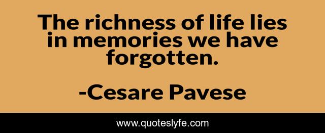 This page presents the quote "The richness of life lies in memories we have forgotten.". Author of this quote is Cesare Pavese. This quote is about memories, forgotten, lies,.