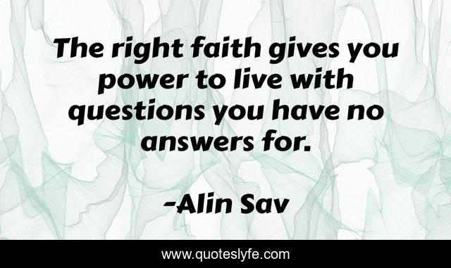 This page presents the quote "The right faith gives you power to live with questions you have no answers for.". Author of this quote is Alin Sav. .