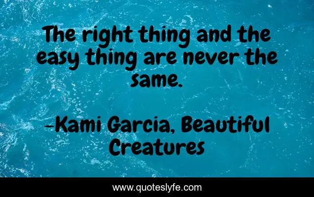 This page presents the quote "The right thing and the easy thing are never the same.". Author of this quote is Kami Garcia, Beautiful Creatures. This quote is about life, beautiful-creatures,.