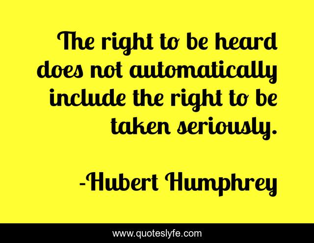 This page presents the quote "The right to be heard does not automatically include the right to be taken seriously.". Author of this quote is Hubert Humphrey. This quote is about liberty, human, rights,.