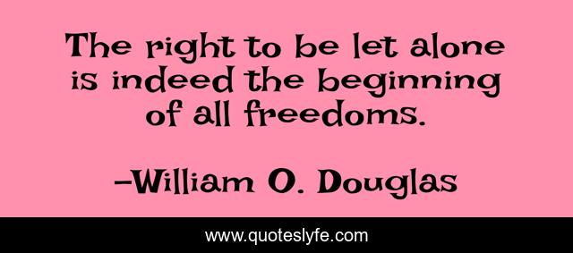 This page presents the quote "The right to be let alone is indeed the beginning of all freedoms.". Author of this quote is William O. Douglas. This quote is about freedom, right, beginning,.
