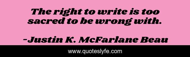 "Justin K. McFarlane Beau Quotes." Quoteslyfe.com, 2025. Fri. 05 Dec. 2025. <https://www.quoteslyfe.com/quote/The-right-to-write-is-too-sacred-189603>.