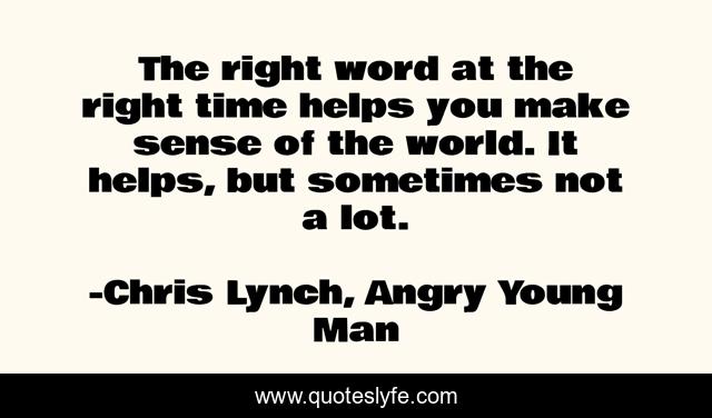 "Chris Lynch, Angry Young Man Quotes." Quoteslyfe.com, 2025. Sat. 06 Dec. 2025. <https://www.quoteslyfe.com/quote/The-right-word-at-the-right-time-112646>.