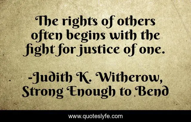 This page presents the quote "The rights of others often begins with the fight for justice of one.". Author of this quote is Judith K. Witherow, Strong Enough to Bend. .