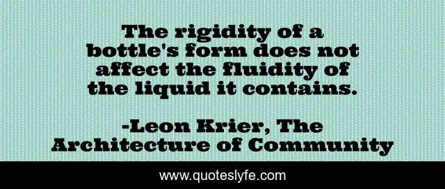 "Leon Krier, The Architecture of Community Quotes." Quoteslyfe.com, 2025. Fri. 05 Dec. 2025. <https://www.quoteslyfe.com/quote/The-rigidity-of-a-bottle-s-form-220033>.