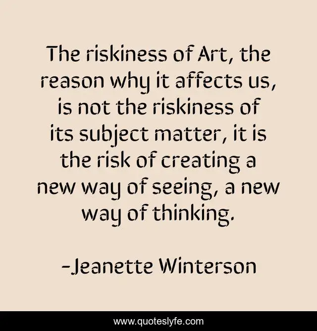 "Jeanette Winterson Quotes." Quoteslyfe.com, 2025. Fri. 05 Dec. 2025. <https://www.quoteslyfe.com/quote/The-riskiness-of-Art-the-reason-why-66056>.