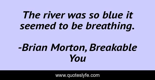 This page presents the quote "The river was so blue it seemed to be breathing.". Author of this quote is Brian Morton, Breakable You. This quote is about beautiful-writing, descriptive, nature,.
