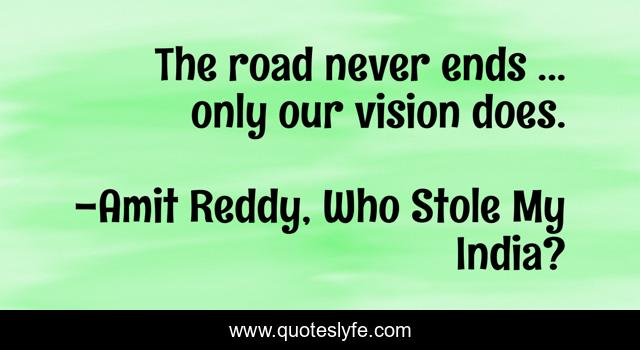 "Amit Reddy, Who Stole My India? Quotes." Quoteslyfe.com, 2025. Fri. 05 Dec. 2025. <https://www.quoteslyfe.com/quote/The-road-never-ends-only-our-vision-137413>.