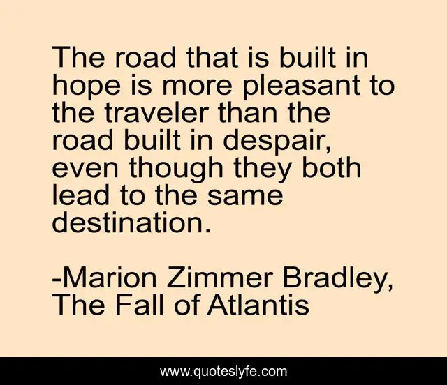 "Marion Zimmer Bradley, The Fall of Atlantis Quotes." Quoteslyfe.com, 2025. Fri. 05 Dec. 2025. <https://www.quoteslyfe.com/quote/The-road-that-is-built-in-hope-19149>.