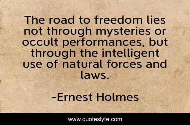 This page presents the quote "The road to freedom lies not through mysteries or occult performances, but through the intelligent use of natural forces and laws.". Author of this quote is Ernest Holmes. This quote is about intelligent, natural, road,.