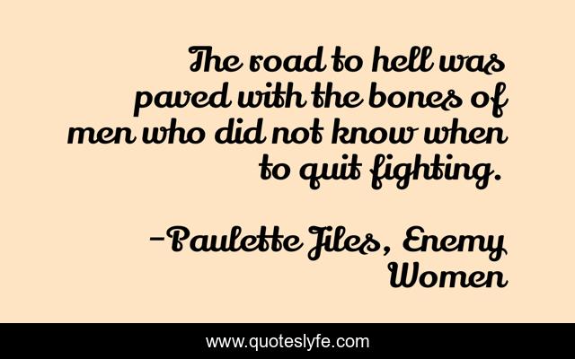 This page presents the quote "The road to hell was paved with the bones of men who did not know when to quit fighting.". Author of this quote is Paulette Jiles, Enemy Women. .