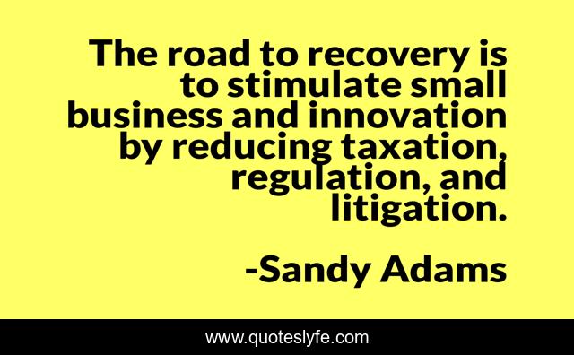 This page presents the quote "The road to recovery is to stimulate small business and innovation by reducing taxation, regulation, and litigation.". Author of this quote is Sandy Adams. This quote is about small, road, innovation,.