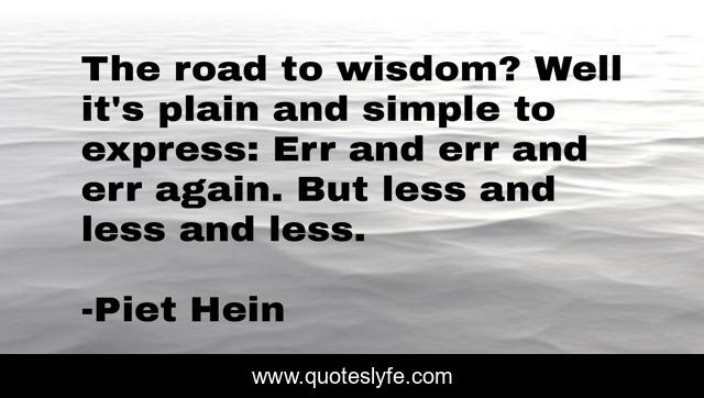 This page presents the quote "The road to wisdom? Well it's plain and simple to express: Err and err and err again. But less and less and less.". Author of this quote is Piet Hein. This quote is about failures, mistakes,.