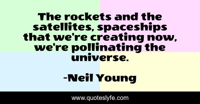 This page presents the quote "The rockets and the satellites, spaceships that we're creating now, we're pollinating the universe.". Author of this quote is Neil Young. This quote is about universe, now, creating,.