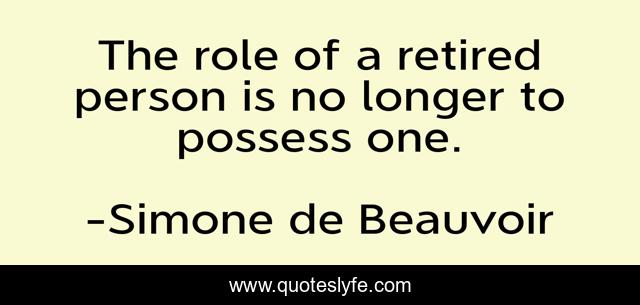 This page presents the quote "The role of a retired person is no longer to possess one.". Author of this quote is Simone de Beauvoir. This quote is about aging, age, old,.