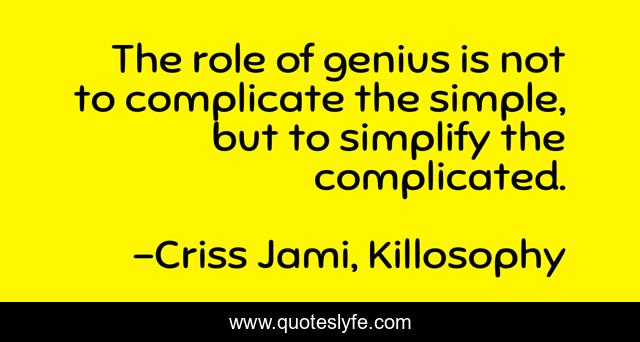 "Criss Jami, Killosophy Quotes." Quoteslyfe.com, 2025. Sun. 07 Dec. 2025. <https://www.quoteslyfe.com/quote/The-role-of-genius-is-not-to-68125>.