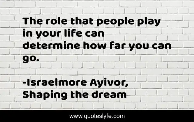 "Israelmore Ayivor, Shaping the dream Quotes." Quoteslyfe.com, 2025. Mon. 08 Dec. 2025. <https://www.quoteslyfe.com/quote/The-role-that-people-play-in-your-127002>.
