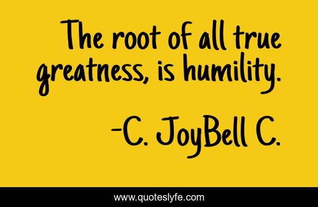 This page presents the quote "The root of all true greatness, is humility.". Author of this quote is C. JoyBell C.. This quote is about inspirational-living, wisdom, inspirational, greatness, enthusiasm, humility,.