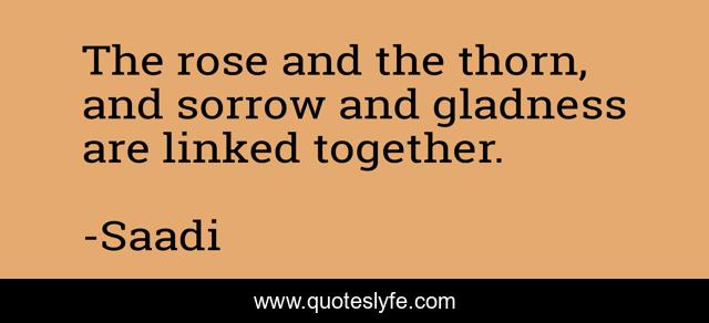 This page presents the quote "The rose and the thorn, and sorrow and gladness are linked together.". Author of this quote is Saadi. This quote is about rose, sorrow, together,.